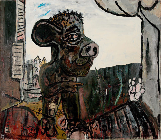 Oil on canvas with collage, 70" X 52", 1990