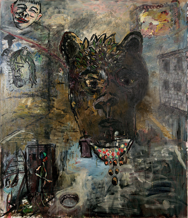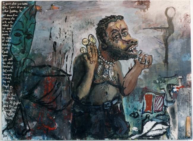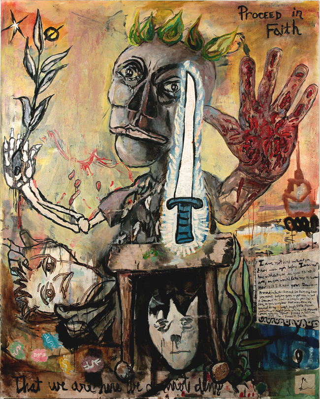 Oil on canvas with collage, 74" X 62", 1994